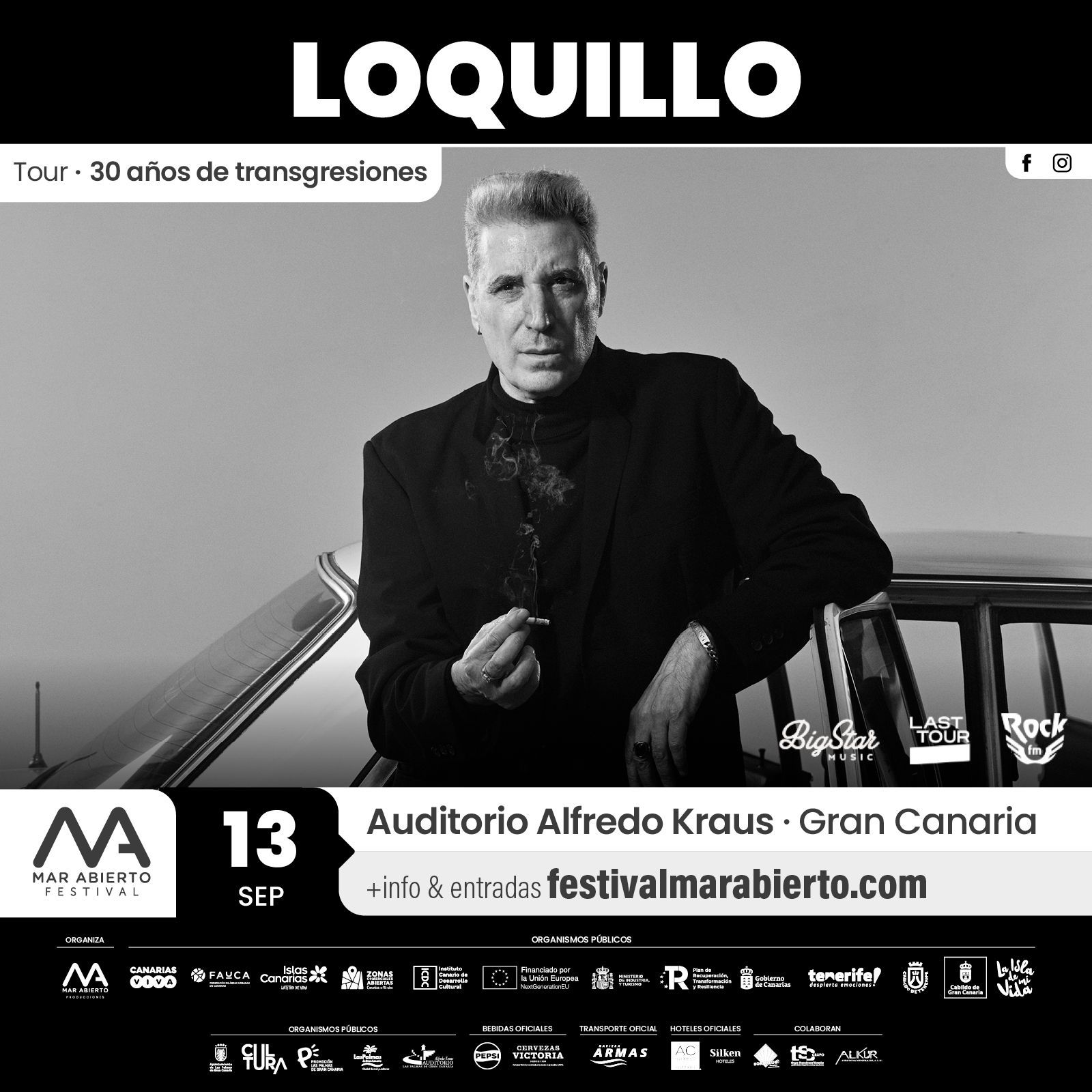 Festival Mar Abierto presenta a Loquillo como el cuarto artista de una temporada que incluye un concierto único en Gran Canaria del artista español dentro de su nueva gira de teatros, festivales y auditorios: ’30 años de Transgresiones’. Loquillo celebra esta nueva gira con una antología de las mejores canciones de su repertorio dedicado a la poesía contemporánea que saldrá a la luz en estos meses. El artista español estará con el público canario el próximo 13 de septiembre a partir de las 21:00 horas en el Auditorio Alfredo Klaus de Las Palmas de Gran Canaria. Las entradas se pondrán a la venta mañana jueves 29 de febrero en la web oficial del festival.