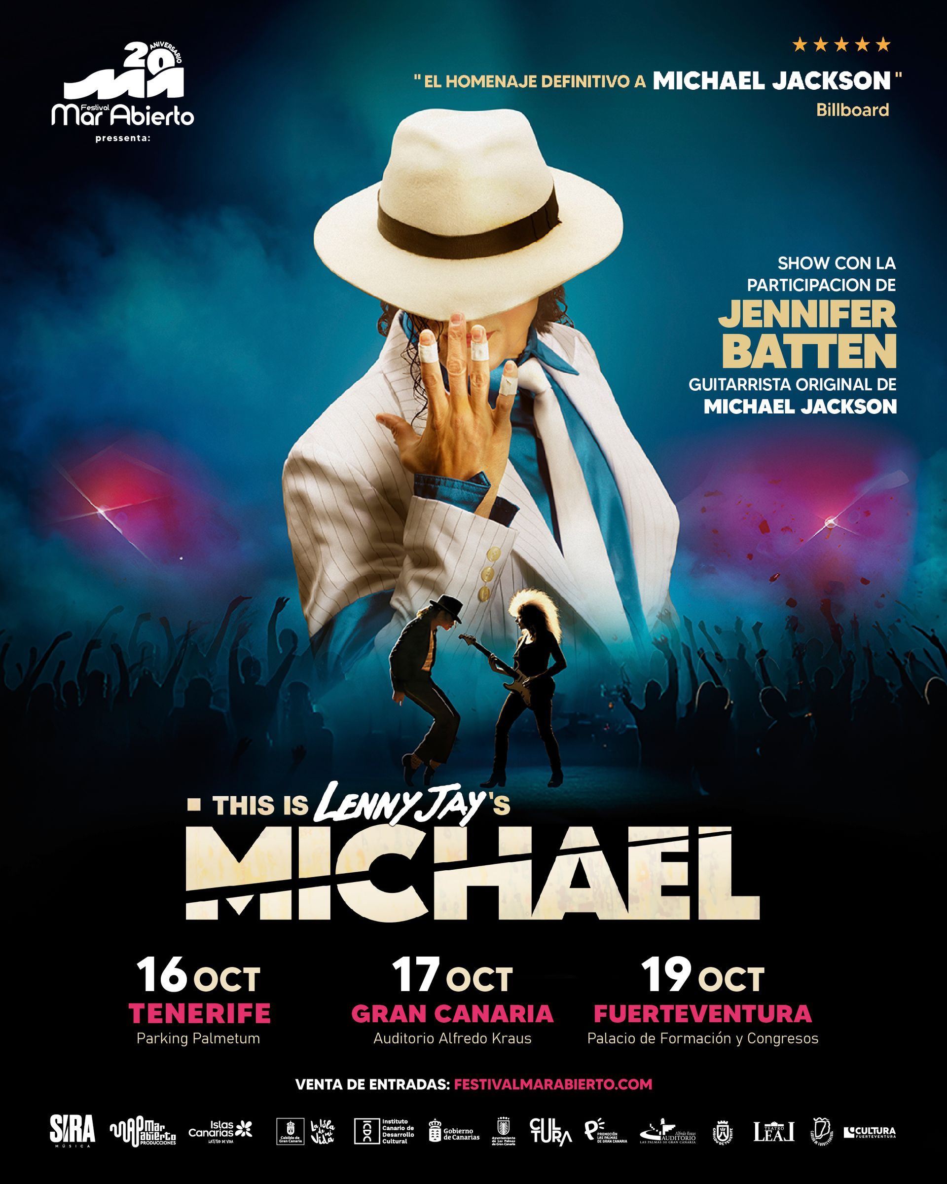 El espectáculo internacional “This Is Michael”, protagonizado por Lenny Jay y con la participación de la mítica guitarrista Jennifer Batten, llegará el próximo mes de octubre a Tenerife, Gran Canaria y Fuerteventura dentro de la programación especial del 20 aniversario del Festival Mar Abierto.